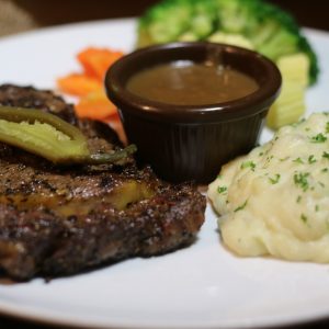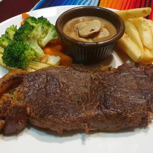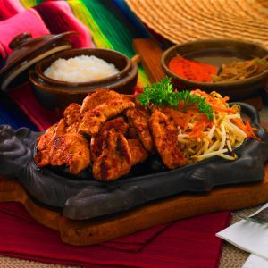 Marinated chicken and Served with vegetables and choice : fries, mashed potato or mexican rice