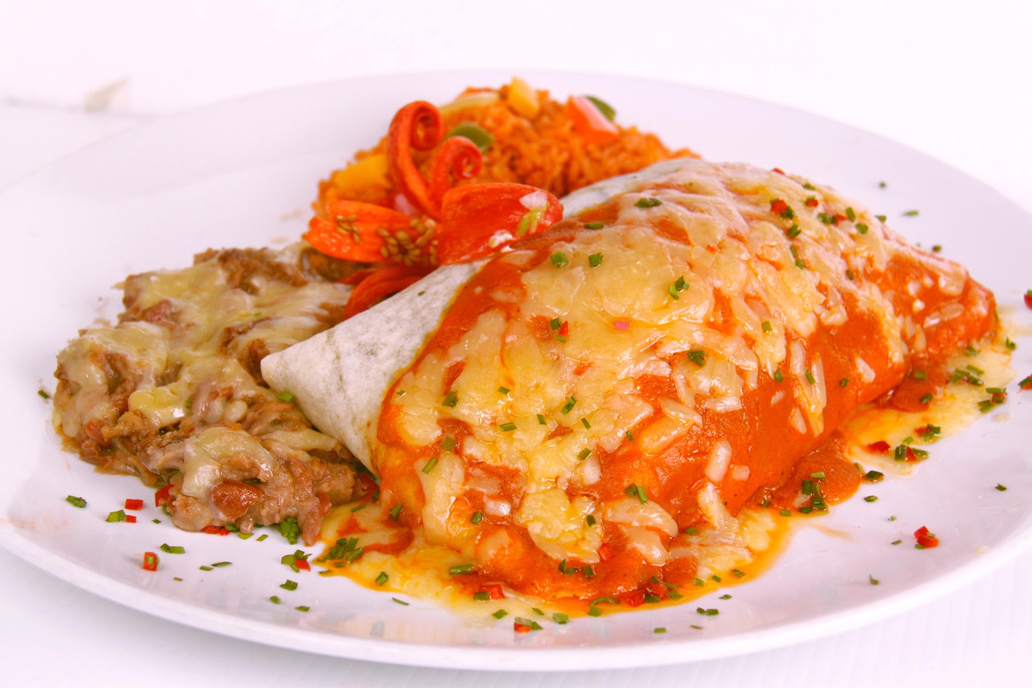 Flour Tortilla stuffed with Lettuce, Tomatoes, Cheese with your choice of filling and Oven Baked