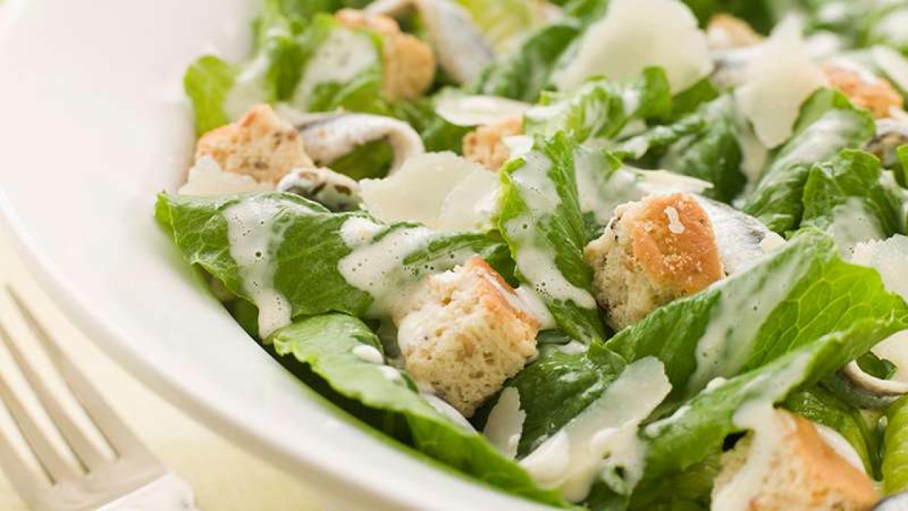 Chopped romaine lettuce and croutons, tossed in a creamy dressing.
