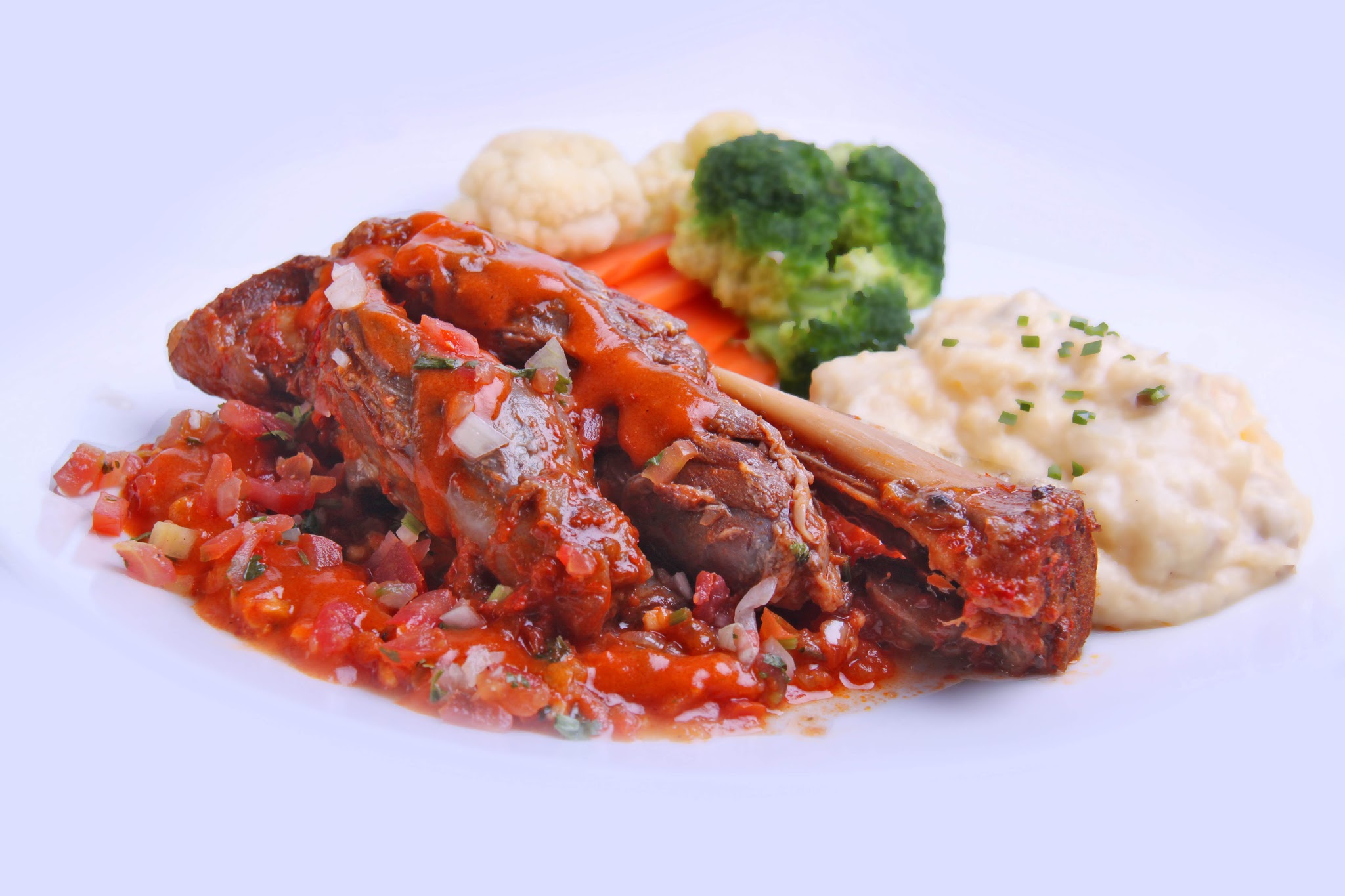 Braised lamb shank with tangy orange sauce Served with mix vegetables and choice : fries, mashed potato or mexican rice